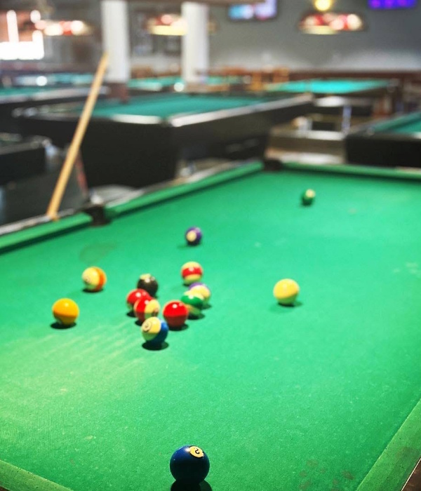 Sit back and soak in the lively ambiance while your favorite tunes play in the background, creating the perfect mood for a laid-back evening of billiards. Sports enthusiasts can also enjoy continuous action on our high-definition TVs, ensuring you don’t miss a second of your favorite games while enjoying great company.